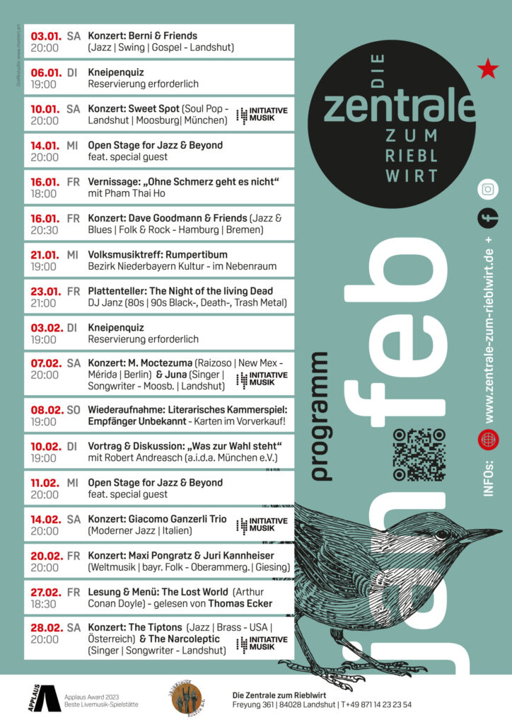 Die Zentrale zum RieblwirtACHTUNG!Das Kammerspiel am Sonntag den 08.02.2025 entfällt leider.SpeisekarteProgramm Januar & Februar